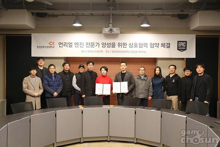 ...청강대는 언리얼 엔진을 전문적으로 활용하는 과정을 개설해 학생들이 작품에 언리얼 엔진을 적극 활용하도록 장려한다는 방침이다. 박성철 에픽게임즈코리아 대표는 “유능한 게임 인재들을 지속적으로 배출하고 있는 게임 명문대학교와 언리얼 엔진 교육 활성화를 위한 협약을 맺게 돼 매우 기쁘다