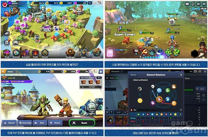 ... 더불어 반실시간 턴제 운용법, 속성을 고려한 캐릭터 선택, 스킬 활용법 등을 담아 게임의 기본적인 전략 요소를 파악하도록 했다. 또한, 스토리 모드 및 보스 전투, PVP 등 콘텐츠에 등장하는 스카이랜더들의 외형과 함께 속성별 상생 혹은 상극 관계를 활용한 전투 장면을 미리 확인