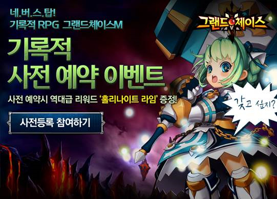 ...actoz. com/Games/Gc/PreRegEvent)에서 자신의 휴대폰 번호를 입력하는 방식으로 진행되며 iOS와 안드로이드 사용자 모두 참여할 수 있다. 사전 예약에 참여한 모든 유저에게는 정식 서비스 이후 ‘홀리나이트 라임’ 캐릭터를 증정한다