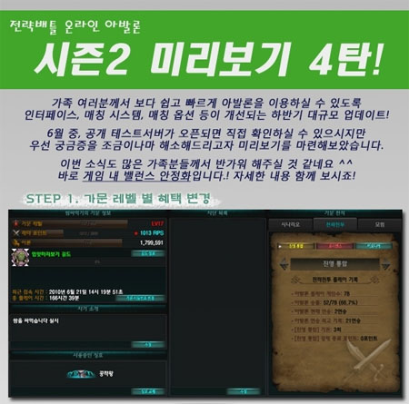 ... 금일, 홈페이지를 통해 공개한 ‘시즌2, 미리보기’ 네 번째 편은 이용자들의 의견 중 가장 뜨거운 반응을 보였던 ‘밸런스 안정화’로, ▲영웅의 스킬, 아이템의 형평성을 맞춘 영웅 밸런스 수정과 ▲소비성 캐쉬 아이템의 판매 중지, ▲가문 스탯을 없앤 가문 레벨 별 혜택 변경을 주
