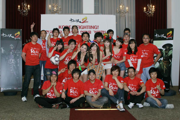 ... 참석한 유저들은 <십이지천2>에서 준비한 이벤트 장소에 모여, 푸짐한 저녁식사와 함께 즐거운 응원 이벤트를 시작했고이날 응원전에 참석한 모든 유저은 월드컵 공식 응원 티셔츠와 함께, 다양한 이벤트를 통해 월드컵 공인구 자블라니를 경품으로 제공받았다. 이 날 모임에