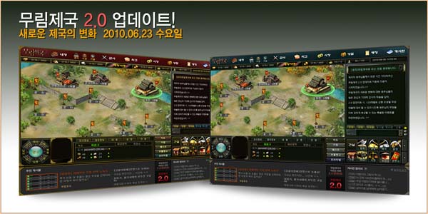 ... ‘무림제국’ 서비스 이후 첫 업데이트로, 기존 MMO 장르의 게임에서만 볼 수 있었던 대규모 공성전, 아이템 강화 시스템 등 신규 시스템들이 추가된다. 또한 초보 유저들이 육성에 전념하여 빠르게 상위 컨텐츠를 즐길 수 있도록 상위 시대 유저가 하위 시대 유저를 공격하지 못하도