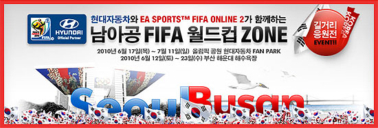 ... 우선 서울에서는 올림픽공원 평화의 광장에 마련된 현대 FAN PARK에서 거리 응원전을 진행한다. 현대 FAN PARK는 현대자동차가 2010 남아공 FIFA 월드컵 기간 중 전 세계 19개국 32개 도시의 대표 광장 및 공원에 상설 운영하는 공식 거리응원 장소다. 현장을