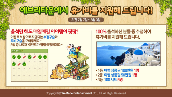 ... 정답자 중 추첨을 통해 총 1000명에게 문화상품권(5천원)이 증정되고, 동영상을 SNS에 공유한 이용자 전원에게 10,000만 게임머니가 제공된다. 이 게임의 모델은 7월 20일 공개될 예정이다. 대대적인 신규 콘텐츠 업데이트와 추가 이벤트도 발표됐다