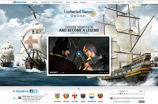 ...netmarble. com/uwo)>의 서비스를 실시한다. 현재 ‘넷마블닷컴’에 <대항해시대> 영문판 티저 사이트를 오픈, 오는 6월 15일부터 17일까지 미국 LA에서 열리는 E3 Expo에서 동영상과 플레이 시연을 통해 해외 게임이용자들에게 첫 선을 보일 예정