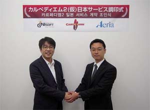 ... ‘카르페디엠2’의 일본 서비스를 담당하게 된 아에리아(대표 小林 祐介: 코바야시 유스케)는 2002년 설립된 게임 전문 퍼블리셔로 ‘그랜드판타지아’, ‘룬즈오브매직’의 서비스를 맡은 업체. 아에리아의 나카가와 히데아키 본부장은 “카르페디엠2라는 멋진 타이틀과 계약할 수 있어