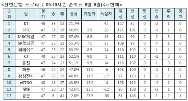 ... 단순히 승수만 챙긴 것이 아니라 세 경기 모두 3대0으로 완승을 이끌어내면서 부족했던 세트 득실까지도 모두 만회했다. 순위도 4위로 뛰어 오르면서 3위 MBC게임 HERO를 압박하고 있다. SK텔레콤은 5라운드 2주차 경기에서 5일(토) CJ를 3대0으로 완파했고 8일(화)에