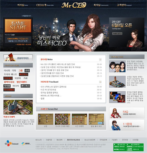 ... 테스트에 발맞춰 웹페이지도 개편된다. 새로 개편된 웹페이지는 초보자가이드 등 게임 진행에 대한 다양한 정보를 제공하여, 최초로 ‘CEO’가 되는 게임이용자들이 보다 쉽게 게임을 진행해 나가도록 구성되었다. 게임에 참여하는 고객을 대상으로 이벤트도 진행된다
