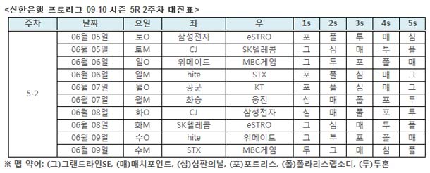 ... 또 9일(수)에는 2위 STX SOUL과 3위 MBC게임 HERO가 격전에 돌입한다. 이번 2주차 경기 결과에 따라 순위가 요동칠 것으로 보인다. 5라운드에서 나란히 패했지만 1위 KT Rolster와 2위 STX SOUL은 3위 이하의 팀들보다 5승 이상 거두면서 이변이 일