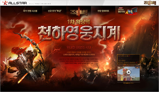 ... 먼저 ‘10만 영웅 양병작전’ 이벤트는 오는 5월 13일부터 6월 17일까지 선착순으로 10만명에게 이동속도 25% 증가의 탈 것 ‘백호’를 100%로 증정하며 27인치 와이드 HDTV 모니터와 로지텍 키보드, 마우스 세트, 문화상품권 등을 추첨을 통해 증정한다. 두 번째의 ‘