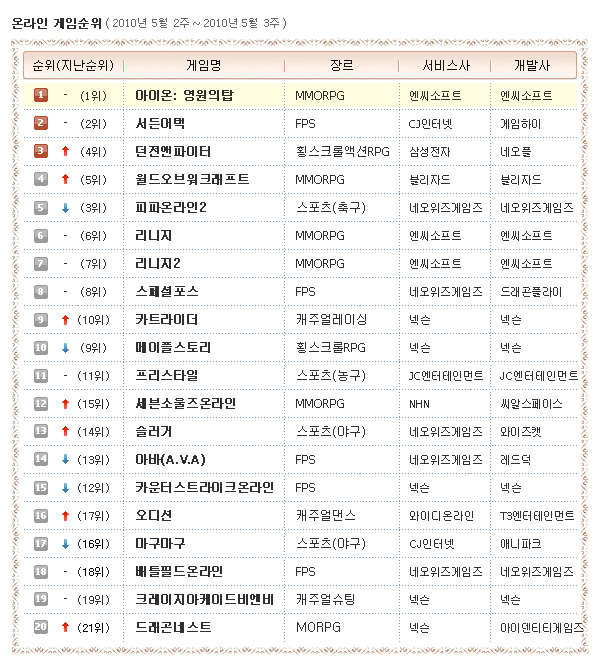 ... 이번 주 온라인게임 순위를 살펴보면 지난주에 이어 총 7종의 게임이 순위 상승을 기록했습니다. 지난주에는 어린이날과 가정의 달을 맞아 전 연령대가 즐기는 캐주얼 게임의 상승세가 있었던 반면 이번 주엔 기존 인기작이 제 순위를 찾아 돌아간 양상입니다. 그 중에서도 오픈과