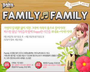 ...ndolfin. com)는 6월 3일까지 ‘멀티 플레이 모드’를 즐긴 게이머에게 경품 응모권인 ‘패밀리 도장’을 무작위 제공하고, 획득한 패밀리 도장 개수에 따라 다양한 경품에 응모할 수 있는 이벤트를 실시한다. 이번 밴드마스터 가족 이벤트 경품은 디지털카메라(1명), 롯데월드