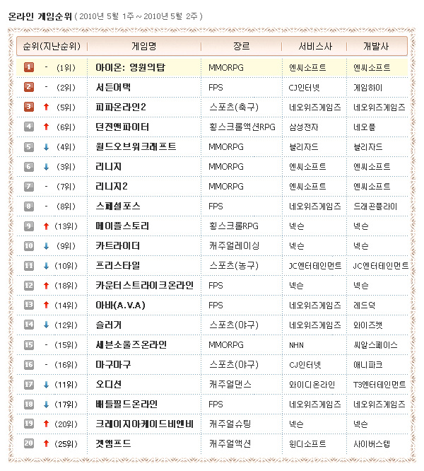 ... 이번 주 온라인게임 순위를 살펴보면 총 7종의 게임이 순위 상승을 기록했습니다. 전반적으로 온 가족이 즐길 수 있는 캐주얼 성향이 강한 게임이었는데요. 가정의 달과 어린이날을 맞아 진행된 각종 이벤트가 게임의 순위상승에 영향을 준 것으로 보입니다
