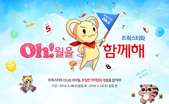 ...co. kr)가 계절의 여왕 5월을 맞이해 다양한 이벤트를 실시한다고 28일 밝혔다. 먼저, <트릭스터>는 게임 플레이 도중 얻을 수 있는 선물상자에서 경험치 부스터, 마스터의 권능, 장인의 불꽃, 행운의 네 잎 클로버 등 아이템을 지급한다
