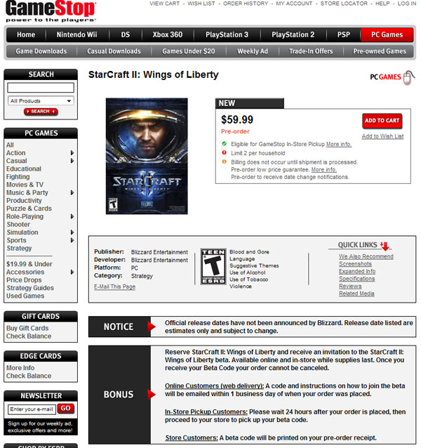 ...단, 인증키를 받은 예약구매자는 구매를 취소할 수 없다. 베타키 제공 예약판매는 '스타2' 일반판 및아트북, 전작이 포함된 USB, 코믹북, 사운드 트랙 등이 포함된한정판에 모두 해당되는 내용이며 가격은 각각 59. 99달러(약 7만원), 99