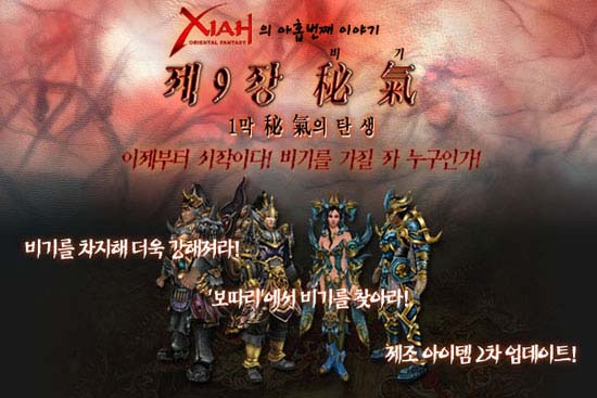 ... 오는 4월 말 선을 보일 1막 업데이트에서는 신규 장착 아이템인 ‘비기’ 아이템이 추가되며, 비기 아이템을 만들 수 있는 가공 시스템과 비기 아이템의 재료가 되는 제조 재료 아이템이 2차로 추가될 예정이다. 이번 ‘제 9장, 秘氣(비기)’ 업데이트에 추가되는 신규 장착 아이템