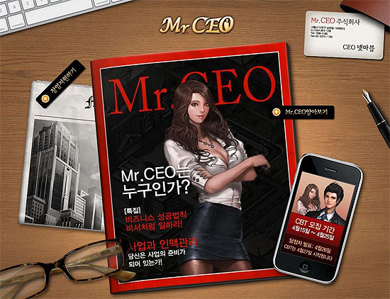 ... 이번 1차 CBT는 다양한 경영과 사업을 소재로 중국 내에서 최고 웹게임의 위치에 오른 ‘미스터CEO’의 재미와 게임 요소를 처음으로 체험할 수 있는 기회로, 테스트 참가를 원하는 게임이용자는 오는 25일까지 넷마블 내 ‘미스터CEO’ 티저사이트(ceo. netmarble. ne
