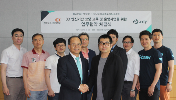 ... 유니티코리아 이창우 차장은 “지속적으로 유니티와 협력관계를 맺어온 청강대학교와 MOU를 체결하게 돼 매우 기쁘게 생각한다”며, “이번 전략적 협약으로 유니티를 활용한 3D 엔진기반 교육에 대한 지원이 활발히 진행되어 다수의 성공 사례가 만들어지도록 적극 도울 것”이라고 전했다.