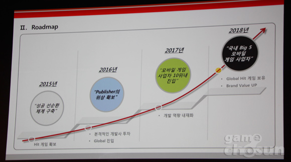 ... 김 팀장은 "현재 SK네트웍스서비스는 1년 정도퍼블리싱 사업을 진행했다. 그 기간동안 약간의 시행착오와 급격하게 변하는 환경 때문에 어려움이 있었다"고 말했다. SK네트웍스서비스는 2015년 게임사업 추진 핵심 키워드로 ▲사람 ▲문화 ▲시스템 ▲상호작용 네 가지를 꼽았다