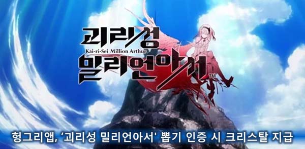 ... 이번 이벤트는 ‘카드는 자꾸 뽑아야 제맛! 뽑기 인증 시즌5’로 ‘괴리성 밀리언아서 헝그리앱’ 커뮤니티에 자신이 뽑은 카드 인증 화면을 게재하면 추첨을 통해 크리스탈(게임 캐시)을 지급한다. 본 이벤트는 7월 6일까지 진행되며 자세한 내용은 ‘괴리성 밀리언아서 헝그리앱’