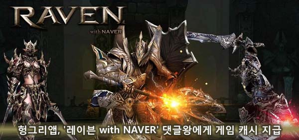 ... 이번 이벤트는 '레이븐 본격 댓글왕'으로 '레이븐 헝그리앱' 커뮤니티에 이벤트 기간 동안 작성한 댓글을 통한 활동량 순위를 산정하여 크리스탈(게임 캐시)을 지급한다. 본 이벤트는 7월 5일까지 진행되며 자세한 내용은 '레이븐 헝그리앱' 커뮤니티 이벤트 공지를 통해 확인할