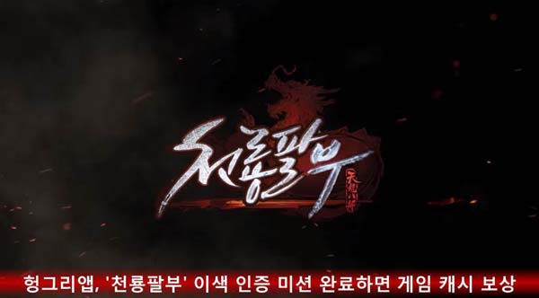 ... 이번 미션은 '20렙 찍기가 공부보다 쉽다!'로 '천룡팔부 헝그리앱' 커뮤니티에 이벤트 기간 동안 천룡팔부 게시판 즐겨찾기를 완료 후 인증 화면을 캡처해 게재하면 추첨을 통해 헝그리앱 내에서 현금처럼 사용할 수 있는 120원보(게임 캐시)를 지급한다. 본 이벤트는 7월 5