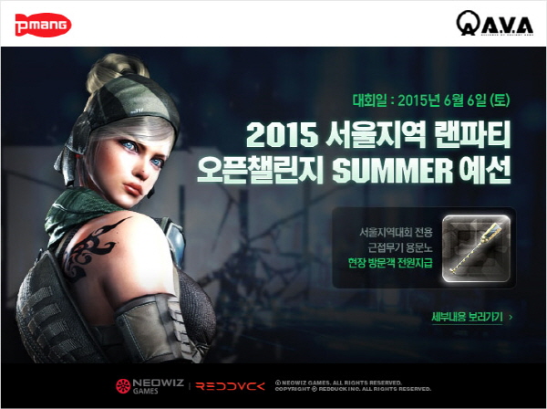 ...이번 PC방 랜파티는 송파구 잠실동에 위치한 라임PC방(신천점)에서 오전 10시부터 오후 5시까지 열린다. 참가를 희망하는 이용자들은 공식 홈페이지 내 참가 신청 페이지에서 등록하면 된다. 랜파티에서는 '오픈챌린지 서머' e스포츠 대회 예선전과 여러 이벤트가 열릴 예정이다