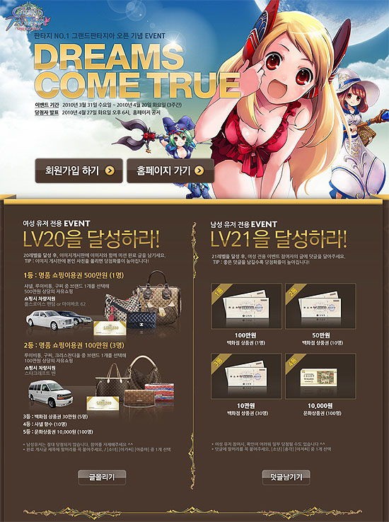 ...co. kr)는 자사의 판타지 MMORPG ‘그랜드판타지아’의 공개서비스를 3월 31일 오후 4시부터 시작한다고 밝혔다. ‘그랜드판타지아’는 한 차례 만의 비공개테스트 후 곧 바로 공개서비스를 진행하는 것으로, 준비된 다양한 콘텐츠와 각종 편의 시스템 등을 갖추고 있으며, 유저들
