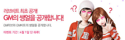 ... 러브비트를 즐기는 모든 유저들은 게임 도중 최초로 공개되는 두 명의 GM의 얼굴을 직접 확인할 수 있으며, GM들은 재미있는 표정으로 친숙한 모습을 선보일 예정이다. 또한, ‘GM러브와 GM비트를 찍어라!’ 이벤트도 함께 진행된다. 게임 내에 무작위로 등장하는 GM들의 얼굴을