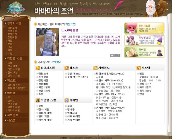 ...gameclub. com)에 게임에 대한 자세한 정보를 담은 웹 가이드북 ‘바바마의 조언’을 준비해 놓고 있다. ‘바바마의 조언’은 처음 게임에 접속하면 기본적인 안내를 해 주는 마을의 현자(賢者) NPC(Non-Player Character)인 바바마의 이름을 활용한 웹 가이드