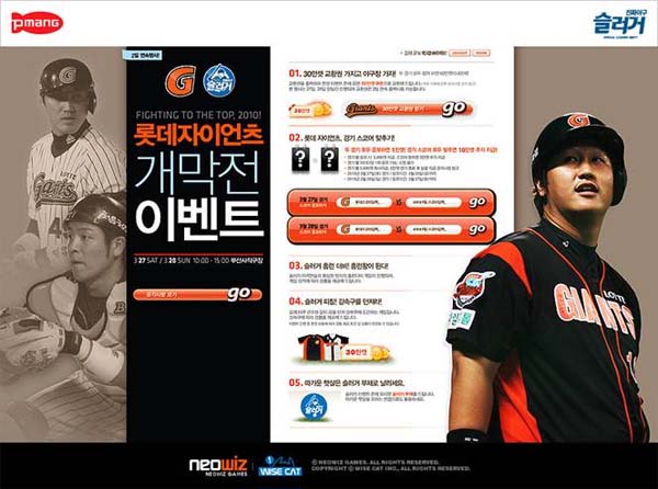 ... 먼저 ‘슬러거’ 홈페이지 내 게임머니 교환 쿠폰을 출력해 부산 사직 구장 내 슬러거 행사장으로 오면 게임머니(30만캣) 쿠폰를 지급받을 수 있다. 또한 행사장 내 ‘슬러거 체험존’에서는 슬러거 홈런 더비 게임과 강속구 던지기 이벤트 등 관람객들을 위해 다채로운 행사가 진행된다