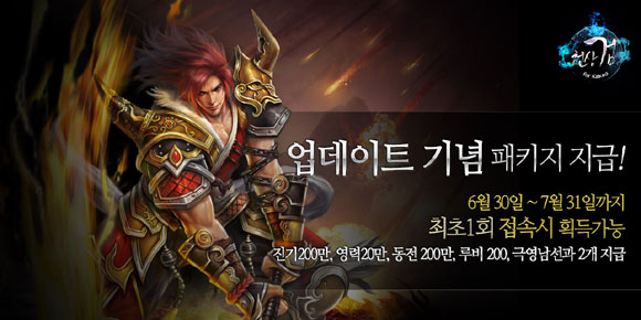 ... ‘천상검 for Kakao’는 대규모 업데이트를 기념해 6월 30일(화)부터 내달 3일(금)까지는 출시 후 가장 높은 금액 규모인 4만원 상당 인게임 아이템을 유저 전원에게 조건 없이 지급하며, 신규 서버에서 30레벨을 달성하는 유저에게 900루비를 제공한다. 또 7월