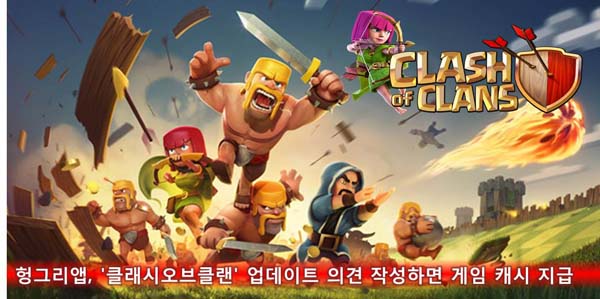 ... 이번 미션은 'CoC 업데이트 제 생각은요'로 'CoC 헝그리앱' 커뮤니티에 게임 업데이트 소식에 대한 본인의 의견을 작성하면 추첨을 통해 'CoC 보석(게임 캐시)'을 지급한다. 본 이벤트는 7월 2일까지 진행되며 자세한 내용은 'CoC 헝그리앱' 커뮤니티 미션 공지를