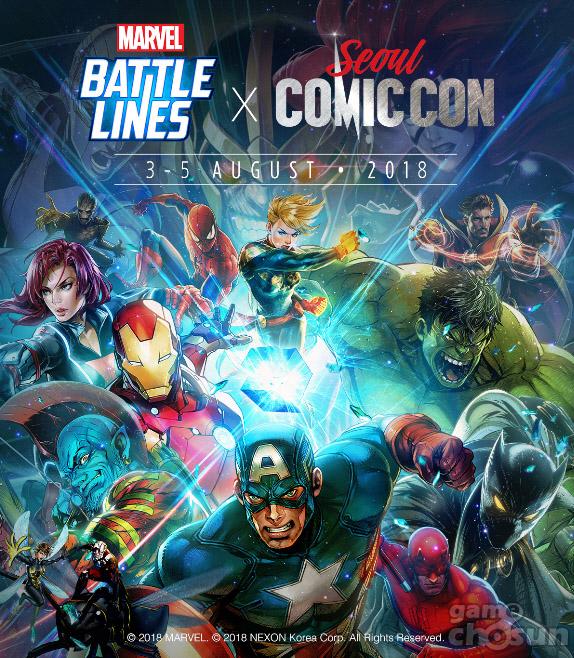 ...또한, ‘마블배틀라인’의 게임성을 잘 나타낼 수 있도록 대형 카드 월을 설치하고, 다양한 마블 캐릭터 카드 모으기 등 이벤트를 진행한다. 이와 함께 사전예약, 게임 시연 등의 미션을 완료하는 유저에게는 게임 쿠폰과 코믹 노트 등의 경품을 증정한다. 한편, ‘마블배틀라인’은 마블 영