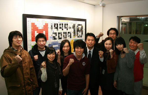 ...엠게임(대표 권이형)은 지난해 창립 10주년을 맞은 엠게임은 엠게임 및 관계사 임직원 1000여명이 모여 새로운 변화와 발전을 이루어 내고자 한마음으로 벽화 만들기에 도전했다. 1000인 벽화는 ‘MGAME 1999-2009 10th’라는 엠게임 창립 10주년을 상징하는 디자인