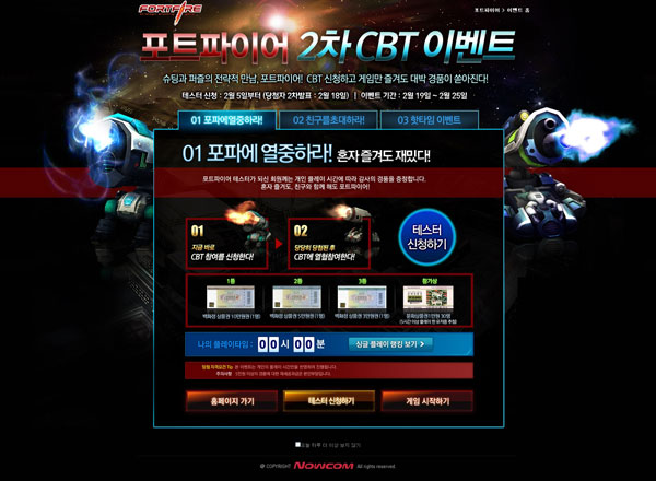 ...co. kr)가 두번째 비공개 시범테스트(이하 CBT)를 19일부터 25일까지 진행한다고 밝혔다. ‘포트파이어’는 턴제로 이루어진 전략슈팅게임으로 타격감에 중점을 둔 공격턴, 두뇌 싸움이 치열한 수리턴, 그리고 전략적인 재미를 제공하는 캐논 설치턴으로 이루어져 다양한 요소의 재미