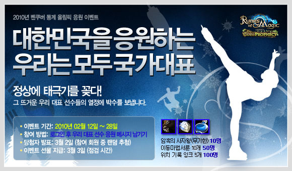 ... 또한 응원 이벤트 시작일부터 게시판에 수 백 개의 응원의 글이 올라오면서 동계올림픽에 대한 뜨거운 응원 열기를 실감할 수 있었다. 특히, 아이디 user007은 ‘메달 색에는 상관 없이 스포츠 정신 그대로 최선을 다하여 결과에 만족하였으면 좋겠다’, wlsdn0726은 ‘뜨거운