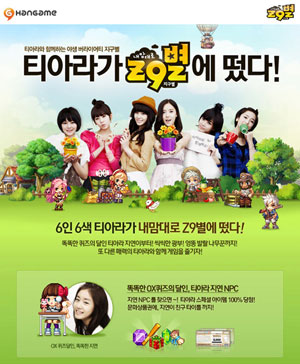 ...com)의 공식 모델로 인기 걸그룹 ‘티아라’를 선정하고, 이를 기념하여 ‘티아라’의 여섯 멤버의 독특한 개성을 엿볼 수 있는 게임 이벤트를 진행한다. 한게임은 ‘티아라와 함께하는 야생 버라이어티 지구별’ 특별 페이지(z9. hangame