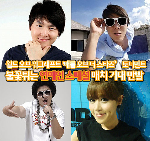 ... ‘배틀 오브 더 스타즈’ 연예인 스페셜 매치 최종 결승전에는 일반부 결승전에서 발군의 실력을 보여준 결승 우승자가 월드 오브 워크래프트 인기 플레이어 그리고 연예인과 함께 팀을 이뤄 ‘배틀 오브 더 스타즈’의 최종 우승팀에 도전하게 된다. 최종 우승팀은 우승 팀 실명으로 어린