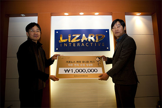 ... 이날 리자드인터렉티브 사내에서 개최된 ‘크로노스 최강 유니온 리그’ 시상식에는 수성에 모두 성공한 상위 입상자들이 참석했으며, 리자드 이광표 상무이사가 각 유니온 대표자에게 직접 상금을 수여했다. 이번 대회에서 수상의 영예를 얻은 1서버 ‘스나이퍼’ 유니온 마스터 ‘맨인블랙’은