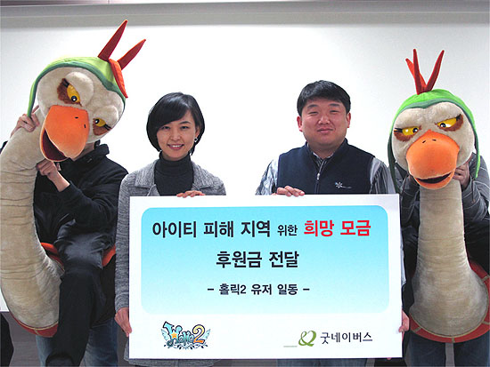 ... 엠게임 임직원들은 이번 성금을 마련하기 위해 ‘아이티 피해지역을 위한 희망모금’ 사내 특별게시판을 개설하고 지난달 19일(화)부터 29일(금)까지 희망의 메시지와 함께 성금 모으기를 위한 적극적인 모금 활동을 펼쳤다. 이와 함께 온라인게임 ‘홀릭2’에서는 아이티 복구에 동참하