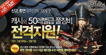 ... <Fighting Korea 이벤트>는 2월 5일부터 3월 2일까지 실시되며 동계 올림픽을 응원 할 수 있는 응원 아이템이 제공되며 태극망토 캐시 아이템이 신규 출시된다. 발렌타인데이 기념 <우리 사랑하게 됐어요 이벤트>는 2월 9일부터 16일까지 사냥을