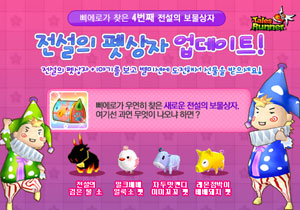... 그 중 다섯번째로 전설의 보물상자 ‘전설의 펫상자’를 업데이트 한다. ‘펫’은 런너들의 친구로 레이싱을 함께 하며 런너들의 능력치를 향상시키는 역할을 한다. ‘전설의 펫상자’에 속한 4개의 펫은 울고, 웃고, 화내는 감정표현이 가능하다