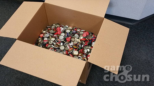 ...", "2240개의 병뚜껑 무게는 약 11파운드 (약 5kg)"라고 밝히며 다른 폴아웃팬들에게 자신의 제안이 성사될 수 있도록 응원해달라는 도움도 요청했다. ▲ 병뚜껑을 수집한 기간은 약 7년 반이며 무게는 5kg에 달한다 그리고 열흘이 지난 6월 24일. 베데스다의 SNS