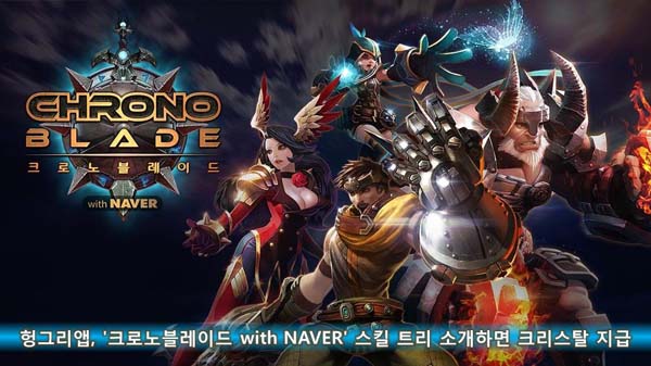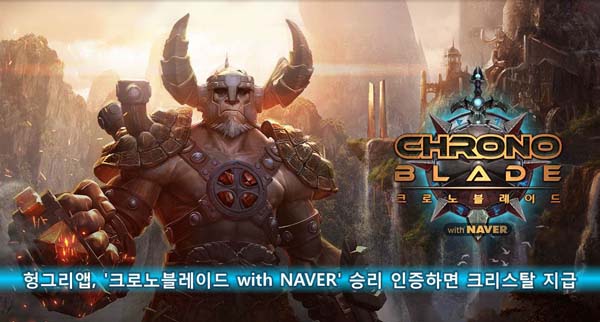 ... 이번 이벤트는 '실시간 대전 승리하고 크리스탈 받아가자!'로 '크로노블레이드 헝그리앱' 커뮤니티에 이벤트 기간 동안 게임 내 실시간 대전을 진행하고 승리 인증 화면을 캡처해 게재하면 추첨을 통해 500 크리스탈(게임 캐시)을 지급한다. 본 이벤트는 6월 26일까지 진행