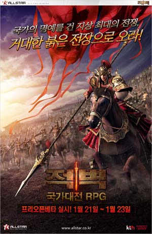 ... KTH 게임사업본부 홍지훈 팀장은 “지난 1년 동안 국내 게임 시장에 최적화시키는 현지화 과정을 거치며 꾸준히 내부 테스트를 진행했다”며, “이미 게임성과 안정성을 검증 받은 ‘적벽’은 과감히 CBT 단계를 생략했고, 빠른 공개서비스로 국내 유저에게 선보일 계획”이라고 전했다.