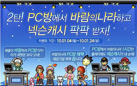 ...com)를 PC방에서 즐길 경우 차별화된 혜택을 제공받는 PC방 프리미엄 서비스를 오늘부터 시범 오픈하며, 이를 기념한 이벤트를 실시한다고 밝혔다. 바람의나라 프리미엄 서비스는 1월 4일부터 17일까지 전국에 있는 모든 넥슨 가맹 PC방에서 체험할 수 있다. 넥슨 가맹 PC