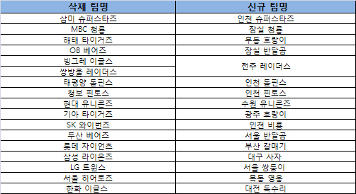 ... 우선 케이비오피와의 라이선스 계약 종료에 따라 2010년 1월 1일부터는 프로야구단의 이름과 로고 등을 게임 내에서 더이상 사용할 수 없게됐다. 따라서 1월 1일부터는 기존 프로 구단의 이름/로고/유니폼이 삭제되며 새로운 구단명과 이미지로 교체된다. 예를 들어 삼미 슈퍼