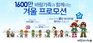 ...com)에 연말 연시 시즌을 기념해 ‘1600만 바람가족과 함께 하는 겨울 프로모션’을 실시한다. 우선, 오늘부터 2010년 1월 10일까지 바람의나라에 접속하여 주막에 위치한 왈숙네/연실네NPC가 제공하는 퀴즈의 정답을 맞히는 내용의 ‘매일매일 퀴즈쇼’가 진행된다. 3개월 이