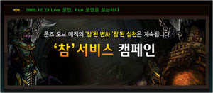 ... 그 실천 방안으로, ‘룬즈오브매직’GM들이 오는 28일부터 매일 저녁 9시에서 새벽 2시까지 게임에 상주하면서 고객들과 함께 게임 플레이 및 실시간 의견 접수, 다양한 깜짝 이벤트 등을 진행하게 된다. 이러한 ‘룬즈오브매직’의 새로운 서비스 실행안을 ‘참 서비스’ 캠페인 코너를